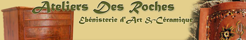 Céramique Terre cuite Argile Email Création Pièces uniques Objets d'art Cours pratiques Stages de formation Stages de poterie Colombin Poterie Andert-Condon Ain Belley Rhône-Alpes Bugey Artisan Tradition Ebénisterie Ebénisterie d'art Tournage sur bois Sculpture sur bois Tournage d'art sur bois Placage de bois Marqueterie Incrustations de laiton Incrustations d'étain Queue d'aronde Tenon Mortaise Meubles massifs Bois massif Fabrication traditionnelle Restauration de meubles anciens Restauration de mobilier Réparation de meubles dans les règles de l'art travail bien fait travail soigné Meubles sur mesure Ecoute du client Création individualisée Colles animales Colle d'os Colle de nerf Colle à chaud Gomme laque Vernis tampon Méché Séchage naturel Années de séchage Ebéniste Andreas Merz Atelier des Roches Ateliers des Roches Belley