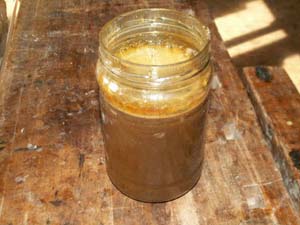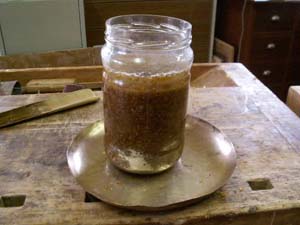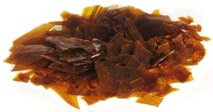 La gomme laque en paillettes est diluée dans de l'alcool éthylique à 95° à raison d'environ 250gr de gomme laque par litre d'alcool. Suivant la qualité du produit d'origine, la dilution est utilisable telle quelle après environ 24h, sinon il faut éventuellement la filtrer (un vieux collant de femme fait très bien l'affaire et peut être stocké dans de l'alcool pour s'en reservir à cette fin) | ||||